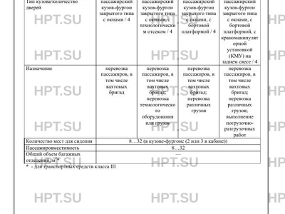 | Назначение | перевозка пассажиров, в том числе вахтовых бригад перевозка пассажиров, в том числе вахтовых бригад; перевозка технологическо го оборудования или грузов перевозка пассажиров, в том числе вахтовых бригад; перевозка различных грузов перевозка пассажиров, в том числе вахтовых бригад; перевозка различных грузов; выполнение погрузочноразгрузочных работ |