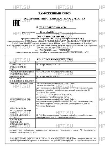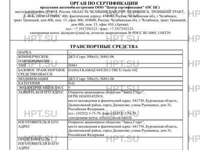 | Коммерческое наименование | ДКТ-Старт 300(e5), 56861-06 Шасси (модификация) Модификации 56861-06 65115-А5, … |