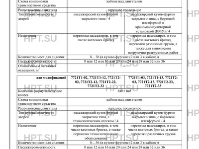 | Тип кузова/кол-во дверей | пассажирский кузов-фургон закрытого типа / 4 пассажирский кузов-фургон закрытого типа, с бортовой платформой и краноманипуляторной установкой (КМУ) / 4 пассажирский кузов-фургон закрытого типа, с технологическим отсеком / 4 пассажирский кузов-фургон закрытого типа, с бортовой платформой / 4 |