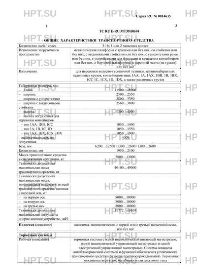 | Оборудование ТС | по заказу: противооткатные упоры, приставные трапы, механизм подъема трапа пружинный или гидравлический, автономная гидростанция, лебедка с гидравлическим или электрическим приводом, передний щит, отбойные брусья, передние упоры, дополнительные опорные устройства с механическим или гидравлическим приводом, увязочные устройства, подъемник(и) запасного(ых) колеса(с), топливный(ые) бак(и), дополнительные борта на рабочей площадке, каркас тента и тент, металлический, или деревянный, или фанерный настил, проблесковый маячок оранжевого цвета |