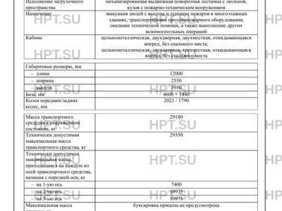 | Исполнение загрузочного пространства | механизированная выдвижная поворотная лестница с люлькой, кузов с пожарно-техническим вооружением |