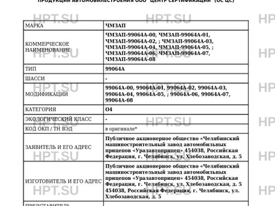 | Коммерческое наименование | ЧМЗАП-99064A-00, ЧМЗАП-99064A-01, ЧМЗАП-99064A-02,, ЧМЗАП-99064A-03, ЧМЗАП-99064A-04, ЧМЗАП-99064A-05,, ЧМЗАП-99064A-06, ЧМЗАП-99064A-07, ЧМЗАП-99064A-08; 99064A |
