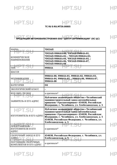 ОТТС ТС RU E-RU.МТ39.00805