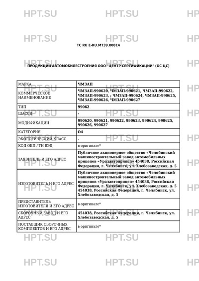 | Марка ТС | ЧМЗАП |