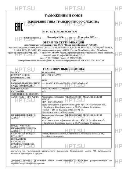 ТС RU E-RU.МТ39.00818.Р3