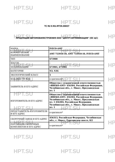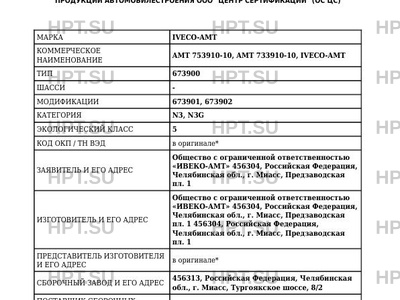 | Коммерческое наименование | AMT 753910-10, AMT 733910-10, IVECO-АМТ; 673900 |