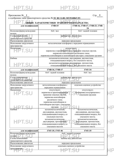 | Оборудование ТС | устройство ограничения максимальной скорости (функцию устройства ограничения максимальной скорости выполняет электронный блок управления двигателем), устройство вызова экстренных оперативных служб с функцией автоматического срабатывания при опрокидывании по заказу: аппаратура спутниковой навигации; тахограф; отопитель; кондиционер (хладагент R134a); предпусковой подогреватель; лебёдки; коробки отбора мощности; дополнительное устройство ограничения максимальной скорости; держатель запасного колеса; запасное колесо; противооткатные упоры; один проблесковый маячок оранжевого цвета; огнетушители; два проблесковых маячка оранжевого цвета устройство ограничения максимальной скорости (функцию устройства ограничения максимальной скорости выполняет электронный блок управления двигателем), устройство вызова экстренных оперативных служб с функцией автоматического срабатывания при опрокидывании по заказу: откидные боковые борта; откидные задние борта; съёмные боковые борта; съёмные задние борта; выдвижные вверх стойки (коники); контейнерные замки; каркас тента; тент; цепь заземления устройство ограничения максимальной скорости (функцию устройства ограничения максимальной скорости выполняет электронный блок управления двигателем), устройство вызова экстренных оперативных служб с функцией автоматического срабатывания при опрокидывании по заказу: гидронасос; гидробак устройство ограничения максимальной скорости (функцию устройства ограничения максимальной скорости выполняет электронный блок управления двигателем), устройство вызова экстренных оперативных служб с функцией автоматического срабатывания при опрокидывании по заказу: рабочая платформа; дополнительные опорные устройства устройство ограничения максимальной скорости (функцию устройства ограничения максимальной скорости выполняет электронный блок управления двигателем), устройство вызова экстренных оперативных служб с функцией автоматического срабатывания при опрокидывании, напорно-всасывающие рукава, насос, один проблесковый маячок оранжевого цвета по заказу: аппаратура спутниковой навигации; тахограф; отопитель; кондиционер (хладагент R134a); предпусковой подогреватель; лебёдки; коробки отбора мощности; дополнительное устройство ограничения максимальной скорости; держатель запасного колеса; запасное колесо; противооткатные упоры; один проблесковый маячок оранжевого цвета; гидравлический привод подъёма/опускания цистерны; механический привод открывания/закрывания заднего днища цистерны; гидравлический привод открывания/закрывания заднего днища цистерны; огнетушители устройство ограничения максимальной скорости (функцию устройства ограничения максимальной скорости выполняет электронный блок управления двигателем), устройство вызова экстренных оперативных служб с функцией автоматического срабатывания при опрокидывании, один проблесковый маячок оранжевого цвета, огнетушители по заказу: аппаратура спутниковой навигации; тахограф; отопитель; кондиционер (хладагент R134a); предпусковой подогреватель; лебёдки; коробки отбора мощности; дополнительное устройство ограничения максимальной скорости; держатель запасного колеса; запасное колесо; противооткатные упоры; один проблесковый маячок оранжевого цвета