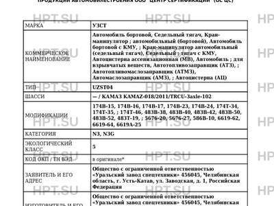 | Заявитель | Общество с ограниченной ответственностью "Уральский завод спецтехники", ОГРН 1067401014450, юридический и фактический адрес: 456045, Челябинская область, город Усть-Катав, улица Заводская, дом 1, Российская Федерация, тел.: (351) 211-31-28, 211-31-29, 211-31-30, факс: (351) 211-31-28, 211-31-29, 211-31-30, электронная почта: secretary@uzst.ru |