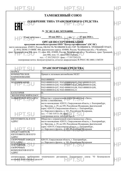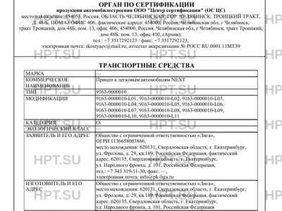 Коммерческое наименование Прицеп к легковым автомобилям NEXT