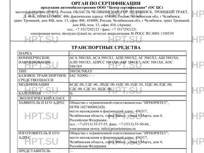 | Тип ТС | 5881SUNRAY |