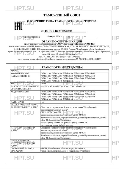 | Модификации | 7074А2-50, 7074А3-50, 7074В3-50, 7074А2-60, 7074А3-60, 7074В3-60, 7074А6-60, 70… |