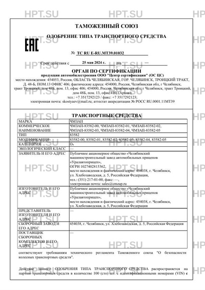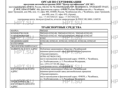 | Коммерческое наименование | ЧМЗАП-83582-00, ЧМЗАП-83582-01, ЧМЗАП-83582-02, ЧМЗАП-83582-03, ЧМЗАП-83582-04,… |