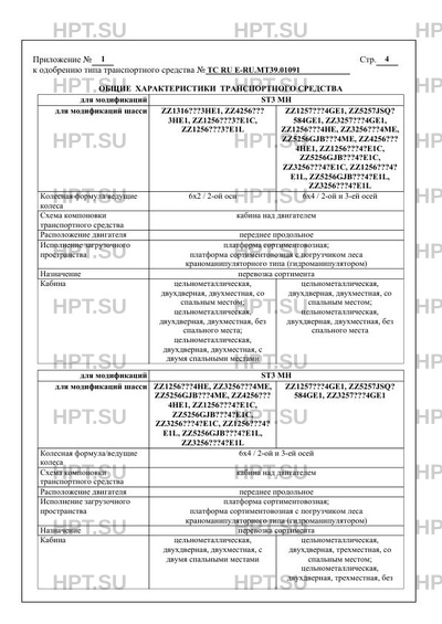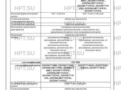 Базовое ТС / Шасси HOWO, SITRAK ZZHS (марка) Шасси (модификация) Модификации Категория HOWO ZZ1257…