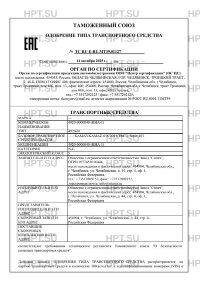| Номер документа | ТС RU Е-RU.МТ39.01127 |