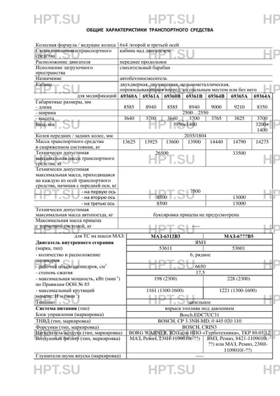 | Коммерческое наименование | Автобетоносмесители "TIGARBO" / 6936?? / 69360А, 69361А, 69360В, 69361В, 69364В… |