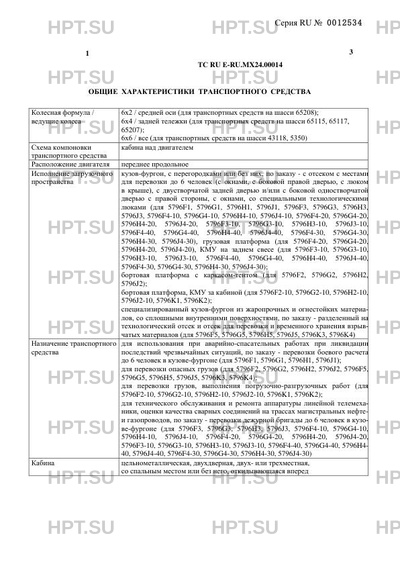 | Оборудование ТС | светосигнальная громкоговорящая установка с проблесковыми маячками синего цвета (для 5796F1, 5796G1, 5796H1, 5796J1); - два проблесковых маячка автожелтого цвета, бесшовные кабелепроводы защиты электропроводки, заземляющая цепочка и металлический штырь для защиты от статических и атмосферных электрических разрядов, теплозащитный экран на выпускной трубе глушителя, защита топливных баков и аккумуляторных батарей, огнетушители (для 5796F2, 5796G2, 5796H2, 5796J2, 5796F5, 5796G5, 5796H5, 5796J5, 5796K3, 5796K4); - по заказу: устройство ограничения максимальной скорости, специальное и технологическое оборудование (по назначению и техническому заданию заказчика), дополнительные топливные баки повышенного объема, тахограф устройство ограничения максимальной скорости (функцию устройства ограничения максимальной скорости выполняет электронный блок управления двигателем), устройство вызова экстренных оперативных служб по заказу: предпусковой подогреватель двигателя, лебедка (для транспортных средств на шасси 43118, 5350), кондиционер |