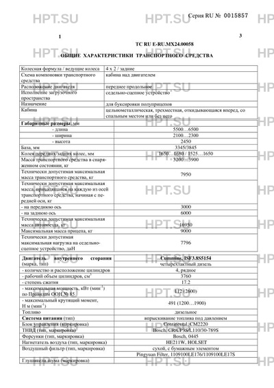 | ДВС | Cummins, ISF3.8S5154, четырехтактный дизель |