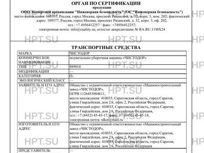 | Коммерческое наименование | подметально-уборочная машина «ЧИСТОДОР» |