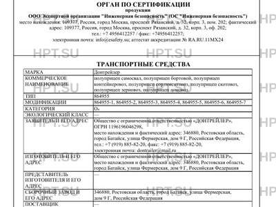 | Заявитель | Общество с ограниченной ответственностью «ДОНТРЕЙЛЕР», ОГРН 1196196046298, место нахождения и фактический адрес: 346880, Ростовская область, город Батайск, улица Фермерская, дом 9 Г, Российская Федерация, тел.: +7 (919) 885-82-20, факс: +7 (919) 885-82-20, электронная почта: dontrailer@mail.ru |