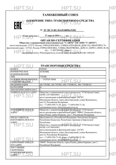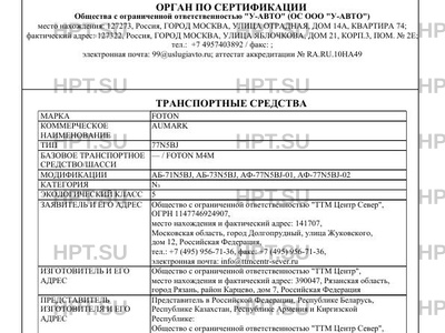 | Марка ТС | FOTON |