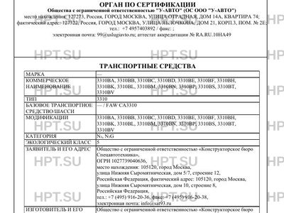 | Орган по сертификации | Орган по сертификации Общества с ограниченной ответственностью "У-АВТО" (ОС ООО "У-АВТО") |