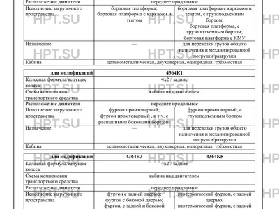 Оборудование ТС устройство вызова экстренных оперативных служб; совмещенная система вентиляции, отопления и кондиционирования (система управления климатом) по заказу: аудиосистема, антенна, система поддержания скорости (круиз-контроль), предпусковой подогреватель двигателя, выключатель аккумуляторной батареи, спойлер (все); грузоподъемный борт, КМУ, каркас и тент - для 4364К0; грузоподъемный борт, боковая дверь - для 4364К1; грузоподъемный борт, окна фургона, отопитель фургона, кондиционер в фургоне, освещение в фургоне, сиденья в фургоне (не предназначены для использования во время движения), перегородка в фургоне специальное , в т.ч. торговое оборудование фургона - для 4364К3; грузоподъемный борт, холодильно-отопительная установка, боковая дверь(двери) - для 4364К5