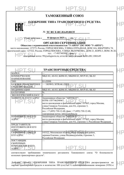 | Номер документа | ТС RU Е-RU.НА49.00135 |