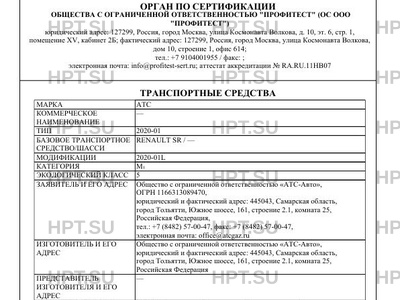 | Заявитель | Общество с ограниченной ответственностью "АТС-Авто", ОГРН 1166313089470, юридический и фактический адрес: 445043, Самарская область, город Тольятти, Южное шоссе, 161, строение 2.1, комната 25, Российская Федерация, тел.: +7 (8482) 57-00-47, факс: +7 (8482) 57-00-47, электронная почта: office@atcgaz.ru |