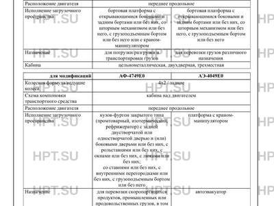 | Дополнительная информация | Транспортные средства не предназначены для перевозки опасных грузов. Транспортные средства модификаций АБ-4149Е0, АБ-4349Е0, АЭ-4049Е0, АЭ-4449Е0, АФ-4749Е0, МАВР-4849Е0 изготавливаются на базе шасси ISUZU тип RFSR модификации FSR34UL-LCUN, FSR34UL-NCUN, FSR34UL-PCUN, FSR34VL-NCUN, FSR34VL-PCUN. |