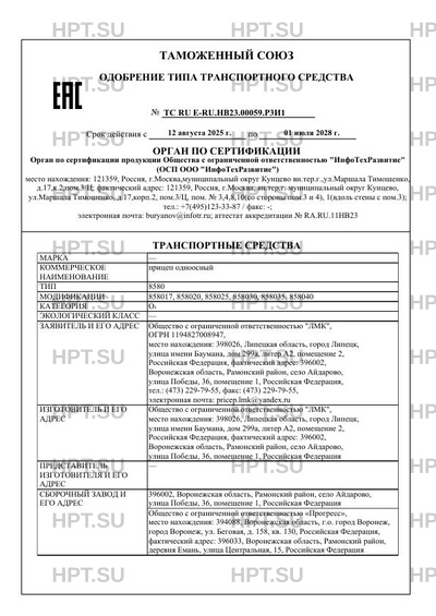 | Номер документа | ТС RU Е-RU.НВ23.00059.Р3И1 |