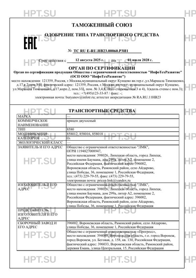 | Номер документа | ТС RU Е-RU.НВ23.00060.Р3И1 |