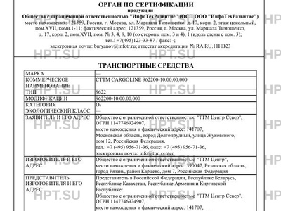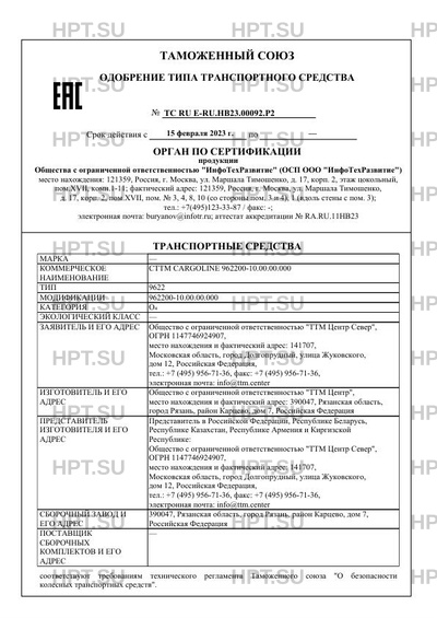 Номер документа ТС RU Е-RU.НВ23.00092.Р2