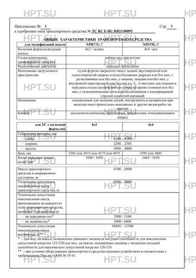 Тип ТС 4А49А БАЗОВОЕТРАНСПОРТНОЕ СРЕДСТВО/ШАССИ - / ISUZU NPR