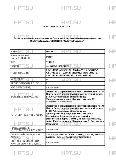 | Марка ТС | IVECO |