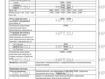 | Оборудование ТС | по заказу: противооткатные упоры; ящик для инструментов; держатель запасных колес; запасные колеса; огнетушители; система подъема первой оси |