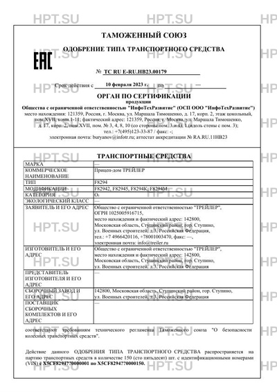 | Номер документа | ТС RU Е-RU.НВ23.00179 |