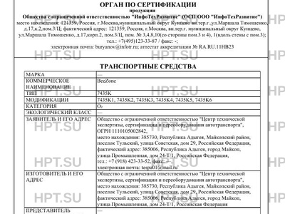 Заявитель Общество с ограниченной ответственностью "Центр технической экспертизы, сертификации и переоборудования автотранспорта", ОГРН 1110105002842, место нахождения: 385730, Республика Адыгея, Майкопский район, поселок Тульский, улица Советская, дом 29, Российская Федерация, фактический адрес: 385006, Республика Адыгея, город Майкоп, улица Промышленная, дом 24-Т/1, Российская Федерация, тел.: +7 (918) 423-33-52, факс: -, электронная почта: tespa01@mail.ru