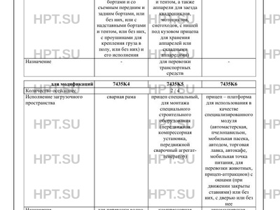 Оборудование ТС тент, каркас тента, борта, аппарели по заказу: для мод. 7435K6: стационарные кондиционеры, вентиляционное и вытяжное оборудование, холодильные шкафы, информационное табло