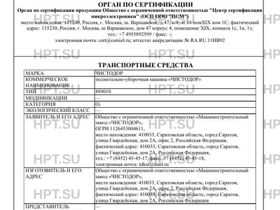 | Заявитель | Общество с ограниченной ответственностью «Машиностроительный завод «ЧИСТОДОР», ОГРН 1126453004611, место нахождения: 410033, Саратовская область, город Саратов, улица Гвардейская, дом 2А, офис 2, Российская Федерация, фактический адрес: 410033, Саратовская область, город Саратов, улица Гвардейская, дом 2А, Российская Федерация, тел.: +7 (8452) 45-45-17, факс: +7 (8452) 45-45-18, электронная почта: tdkst@mail.ru |