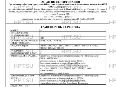 | Базовое ТС / Шасси | GWM TANK, TANK P03 |