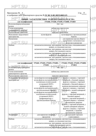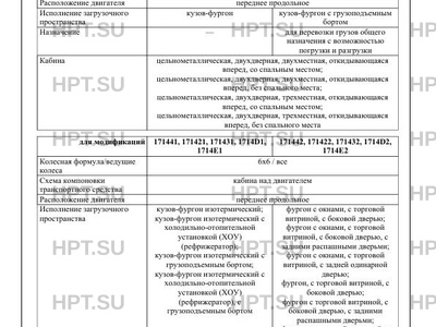 | Оборудование ТС | устройство ограничения максимальной скорости (функцию устройства ограничения максимальной скорости выполняет электронный блок управления двигателем); дневные ходовые огни; устройство вызова экстренных оперативных служб с функцией автоматического срабатывания при опрокидывании; по заказу: отопитель фургона; задние распашные двери; боковая дверь; боковые двери; перегородка; задняя одинарная дверь; выдвижная лестница устройство ограничения максимальной скорости (функцию устройства ограничения максимальной скорости выполняет электронный блок управления двигателем); дневные ходовые огни; устройство вызова экстренных оперативных служб с функцией автоматического срабатывания при опрокидывании; по заказу: предпусковой подогреватель двигателя; лебедка; кондиционер; передние противотуманные фары (кроме модификаций, изготовленных на базе шасси, имеющих официальное утверждение на основании Правил ООН № 48-04); коробка отбора мощности; обтекатель крыши кабины; тахограф; автономный воздушный отопитель; навигационное оборудование; мониторинговая система ГЛОНАСС; держатель запасного колеса (ДЗК); фароискатель устройство ограничения максимальной скорости (функцию устройства ограничения максимальной скорости выполняет электронный блок управления двигателем); дневные ходовые огни; устройство вызова экстренных оперативных служб с функцией автоматического срабатывания при опрокидывании; по заказу: кондиционер в фургоне; аварийно-вентиляционный люк; фильтровентиляционная установка; полки; стол; раскладной стол устройство ограничения максимальной скорости (функцию устройства ограничения максимальной скорости выполняет электронный блок управления двигателем); дневные ходовые огни; устройство вызова экстренных оперативных служб с функцией автоматического срабатывания при опрокидывании; по заказу: лабораторное оборудование; технологическое оборудование; рундуки; шкаф инструментальный; шкаф лабораторный; шкаф-гардероб; верстак; стеллажи; умывальник с подачей горячей воды; лестница на задней стенке фургона; лестница на задней двери фургона; вводно-распределительное устройство (электрощит); внешний ввод для подключения электропитания ТС от внешнего источника; отсек для выносной генераторной установки; стол устройство ограничения максимальной скорости (функцию устройства ограничения максимальной скорости выполняет электронный блок управления двигателем); дневные ходовые огни; устройство вызова экстренных оперативных служб с функцией автоматического срабатывания при опрокидывании; по заказу: оборудование для перевозки животных; трап для погрузки и выгрузки устройство ограничения максимальной скорости (функцию устройства ограничения максимальной скорости выполняет электронный блок управления двигателем); дневные ходовые огни; устройство вызова экстренных оперативных служб с функцией автоматического срабатывания при опрокидывании; по заказу: холодильное оборудование, холодильно-обогревательное оборудование устройство ограничения максимальной скорости (функцию устройства ограничения максимальной скорости выполняет электронный блок управления двигателем); дневные ходовые огни; устройство вызова экстренных оперативных служб с функцией автоматического срабатывания при опрокид
