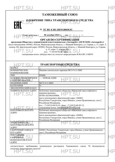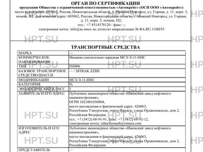 | Коммерческое наименование | Машина смесительно-зарядная МСЗ-Э-11-ПНС |