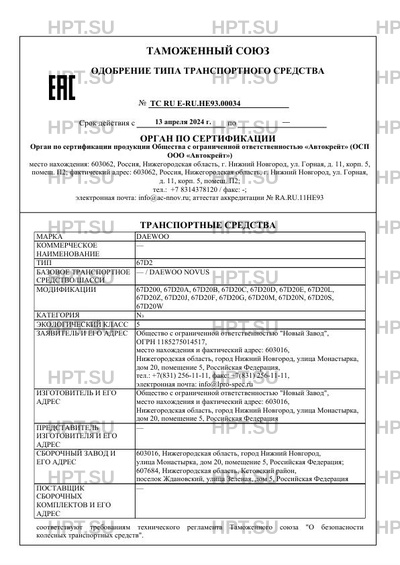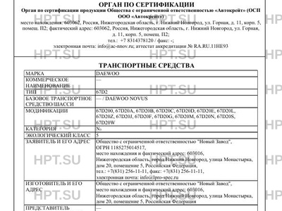 | Базовое ТС / Шасси | DAEWOO NOVUS |