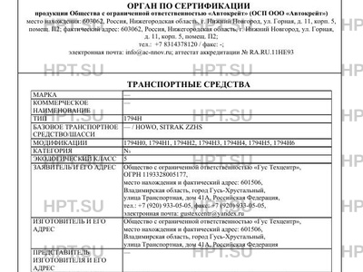 | Орган по сертификации | Орган по сертификации продукции Общества с ограниченной ответственностью «Автокрейт» |