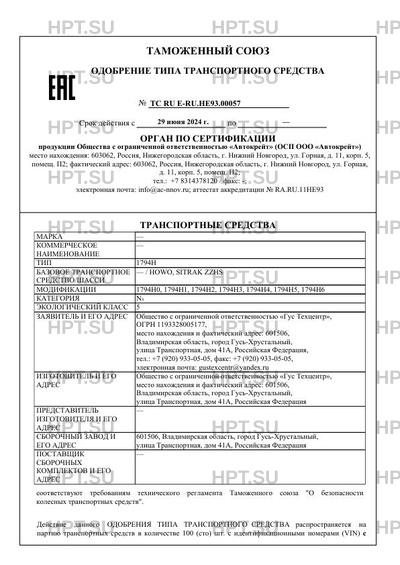 Полное ОТТС ТС RU E-RU.НЕ93.00057