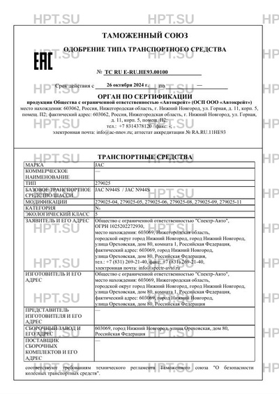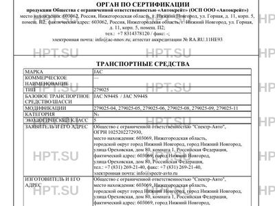 | Базовое ТС / Шасси | JAC N944S / JAC N944S |