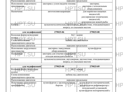 | Назначение | автотопливозаправщик для перевозки пищевых жидкостей; для перевозки технических жидкостей; для перевозки живой рыбы цистерна для откачки и перевозки отходов жизнедеятельности для погрузки/разгрузки и перевозки грузов различного назначения для перевозки пищевых продуктов для перевозки грузов различного назначения с возможностью погрузки и разгрузки |