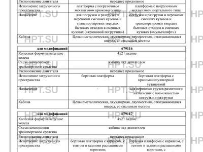 | Исполнение загрузочного пространства | платформа с погрузочным механизмом крюкового типа платформа с погрузочным механизмом портального типа бортовая платформа бортовая платформа с краноманипуляторной установкой бортовая платформа с каркасом, с тентом и задними распашными воротами; бортовая платформа с каркасом, с тентом; бортовая платформа бортовая платформа с каркасом, с тентом и задними распашными воротами, с краноманипуляторной установкой; бортовая платформа с каркасом, с тентом и задними распашными воротами, с грузоподъемным бортом; бортовая платформа с каркасом, с тентом, с краноманипуляторной установкой; бортовая платформа с каркасом, с тентом, с грузоподъемным бортом; бортовая платформа с краноманипуляторной установкой cортиментовозная платформа cортиментовозная платформа с гидроманипулятором за кабиной седельно-сцепное устройство седельно-сцепное устройство, КМУ за кабиной платформа с гидроподъемником металлический кузов-бункер с задней разгрузкой; металлический кузов-бункер с задней разгрузкой с краноманипуляторной установкой cамосвальная платформа с 2-х сторонней разгрузкой; cамосвальная платформа с 3-х сторонней разгрузкой; cамосвальная платформа с 2-х сторонней разгрузкой, с краноманипуляторной установкой (КМУ) за кабиной; cамосвальная платформа с 3-х сторонней разгрузкой, с краноманипуляторной установкой (КМУ) за кабиной кузов-фургон с окнами, дверьми, оборудованием, с краноманипуляторной установкой, с 1 пассажирским сиденьем; кузов-фургон с окнами, дверьми, оборудованием, с краноманипуляторной установкой, с 2 пассажирскими сиденьями; кузов-фургон с окнами, дверьми, оборудованием, с краноманипуляторной установкой, с 3 пассажирскими сиденьями; кузов-фургон с окнами, дверьми, оборудованием, с краноманипуляторной установкой, с 4 пассажирскими сиденьями; кузов-фургон с окнами, дверьми, оборудованием, с краноманипуляторной установкой, с 5 пассажирскими сиденьями; кузов-фургон с окнами, дверьми, оборудованием, с краноманипуляторной установкой, с 6 пассажирскими сиденьями; кузов-фургон с бортовым фрагментом, с краноманипуляторной установкой (КМУ); кузов-фургон, с бортовым фрагментом, с краноманипуляторной установкой (КМУ), с окнами; кузов-фургон, с бортовым фрагментом, с 1 пассажирским сиденьем в фургоне, с краноманипуляторной установкой (КМУ), с окнами; кузов-фургон, с бортовым фрагментом, с 2 пассажирскими сиденьями в фургоне, с краноманипуляторной установкой (КМУ), с окнами; кузов-фургон, с бортовым фрагментом, с 3 пассажирскими сиденьями в фургоне, с краноманипуляторной установкой (КМУ), с окнами; кузов-фургон, с бортовым фрагментом, с 4 пассажирскими сиденьями в фургоне, с краноманипуляторной установкой (КМУ), с окнами; кузов-фургон, с бортовым фрагментом, с 5 пассажирскими сиденьями в фургоне, с краноманипуляторной установкой (КМУ), с окнами; кузов-фургон, с бортовым фрагментом, с 6 пассажирскими сиденьями в фургоне, с краноманипуляторной установкой (КМУ), с окнами; кузов-фургон с бортовым фрагментом; кузов-фургон, с бортовым фрагментом, с окнами; кузов-фургон, с бортовым фрагментом, с 1 пассажирским сиденьем в фургоне, с окнами; кузов-фургон, с бортовым фрагментом, с 2 пассажирскими сиденьями в фургоне, с окнами; кузов-фургон, с бортовым фрагментом, с 3 пассажирскими сиденьями в фургоне, с окнами; кузов-фургон