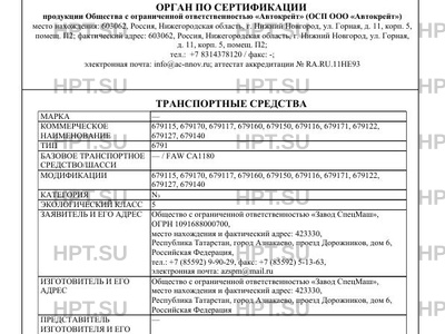 | Заявитель | Общество с ограниченной ответственностью "Завод СпецМаш", ОГРН 1091688000700, место нахождения и фактический адрес: 423330, Республика Татарстан, город Азнакаево, проезд Дорожников, дом 6, Российская Федерация, тел.: +7 (85592) 9-90-29, факс: +7 (85592) 5-13-63, электронная почта: azspm@mail.ru |