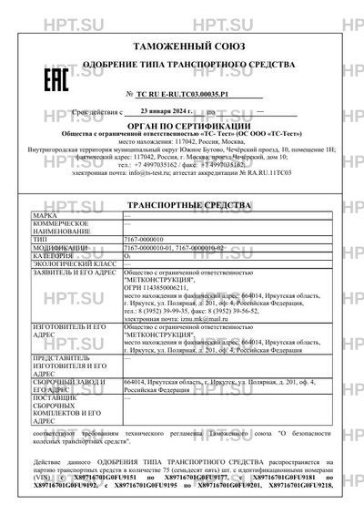 | Модификации | 7167-0000010-01, 7167-0000010-02 |